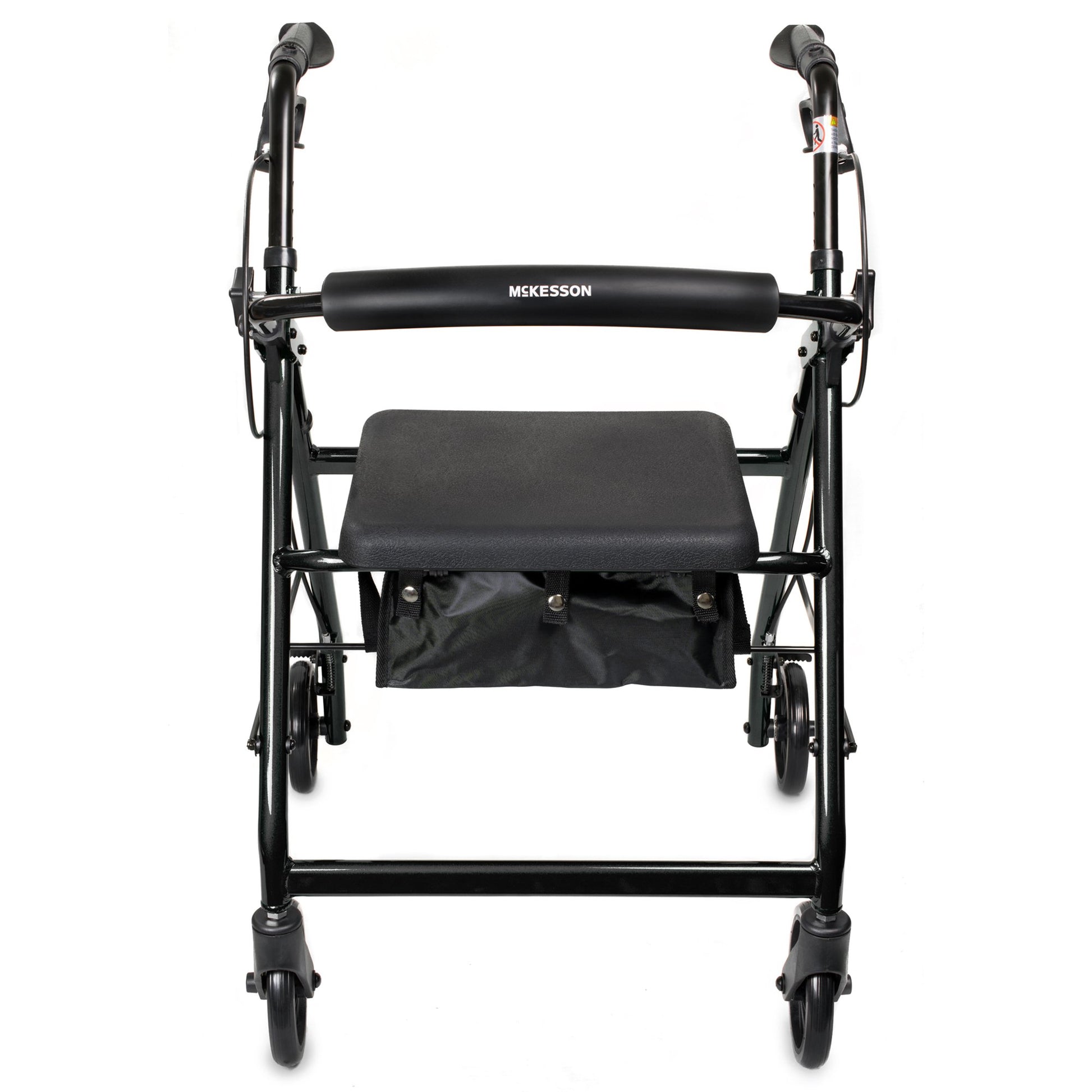 4-Wheel Rollator McKesson Black Adjustable Height / Folding Aluminum Frame