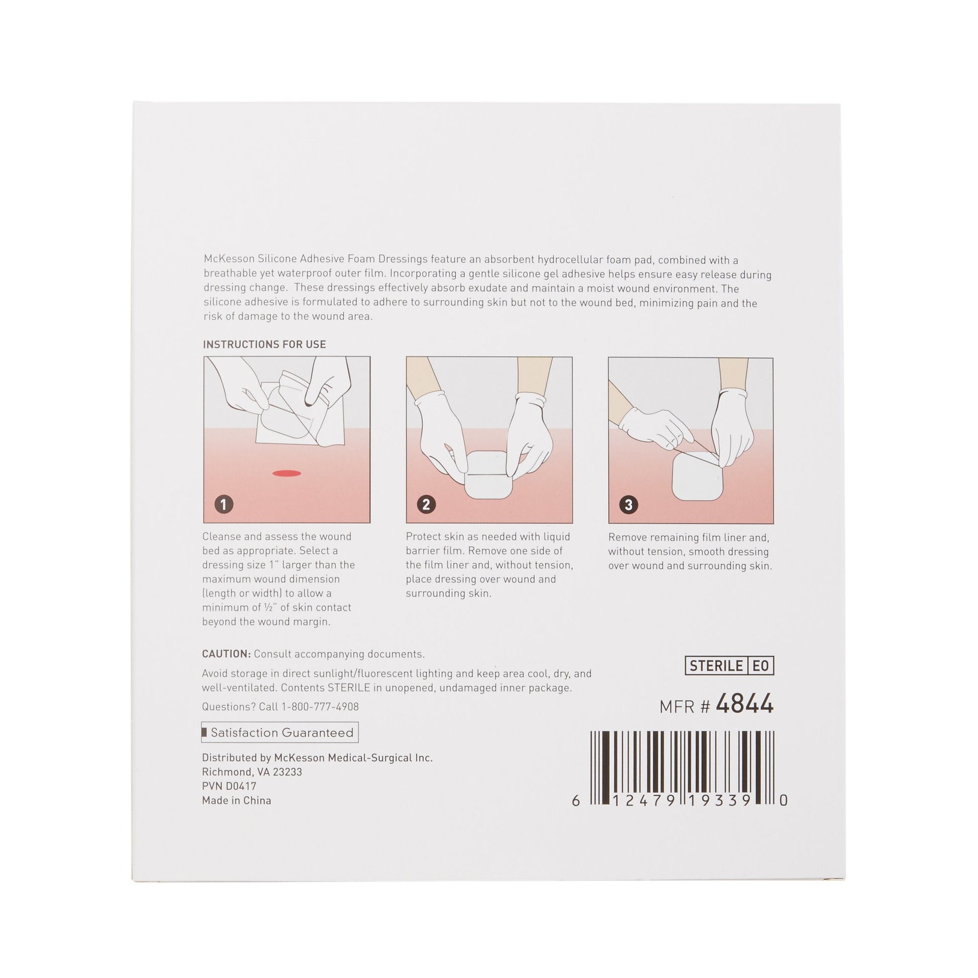 5-Layer Foam Dressing McKesson 6 X 6 Inch With Border Film Backing Silicone Gel Adhesive