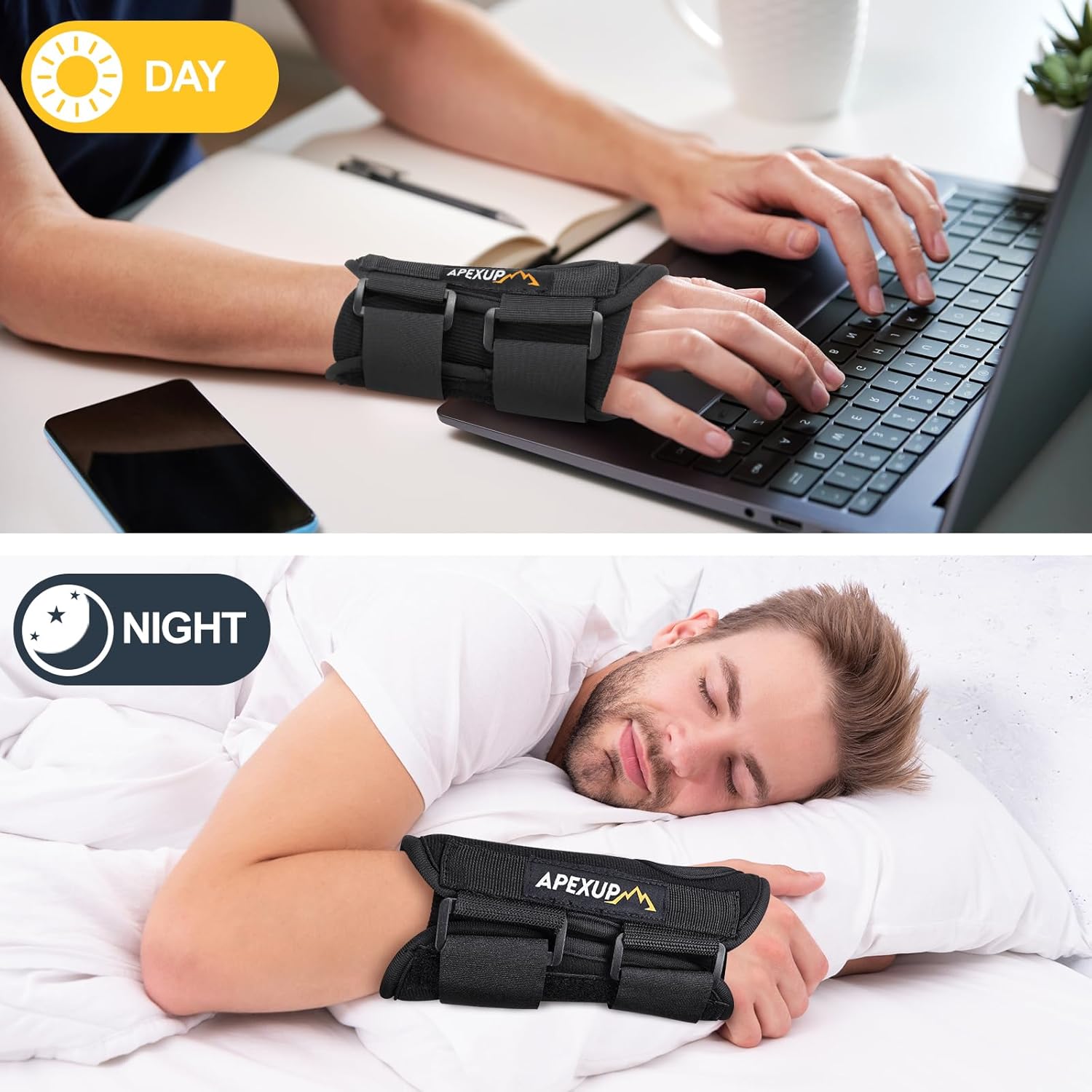 Advanced Support: Removable aluminum palmar stay conforms to your hand’s natural curve, while two soft plastic splints on the back provide flexible support for daily activities and recovery.