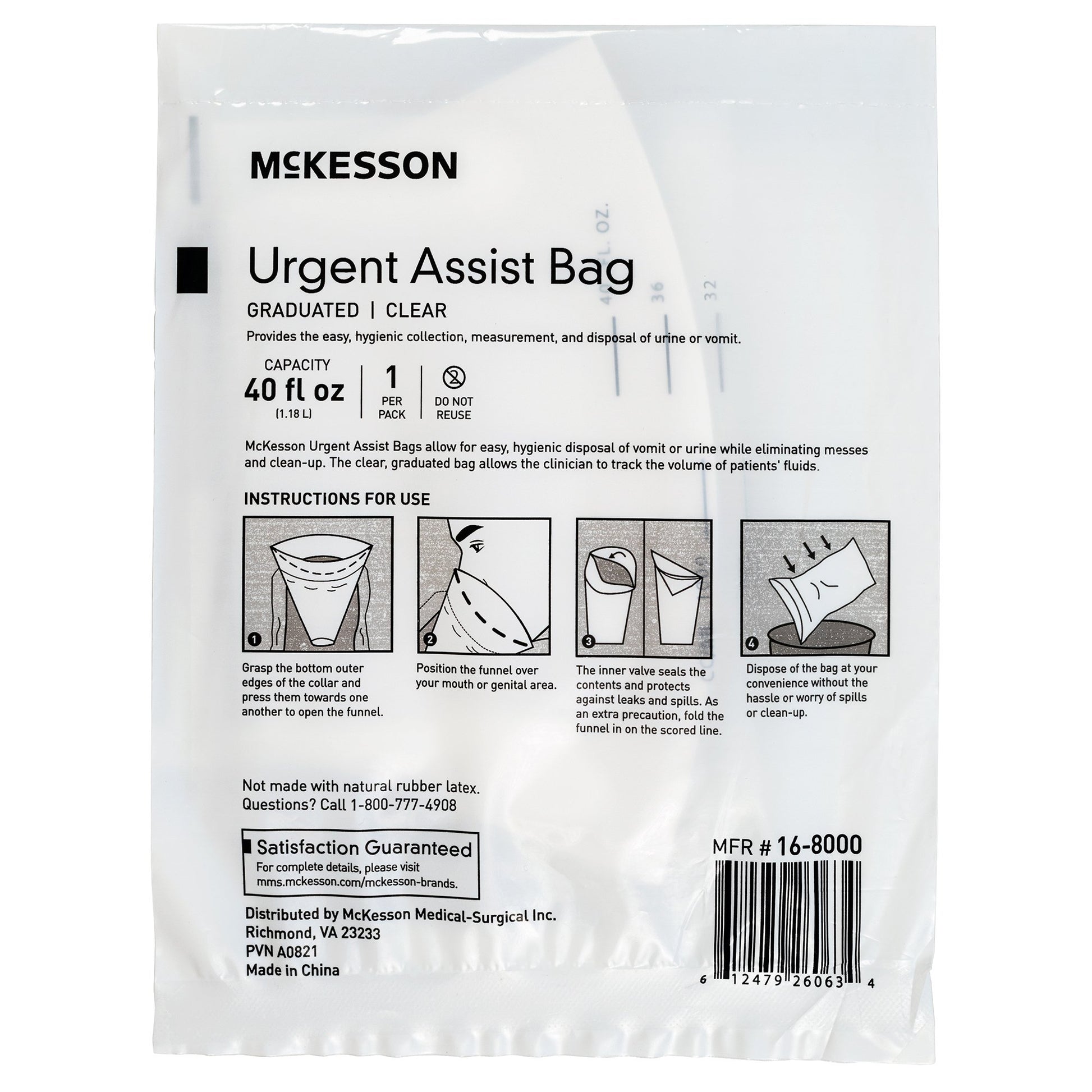 - Clear bag with graduated markings allows clinicians and users to view contents and track the amount of patient's expelled fluids