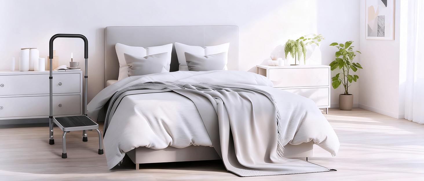 - Sturdy & Durable: Made of premium iron, our bed step stool provides sturdy support with a weight capacity of up to 300 lbs. And the rust-resistant coating on the surface makes it more durable and lasts longer, providing a sustainable solution for your daily routine