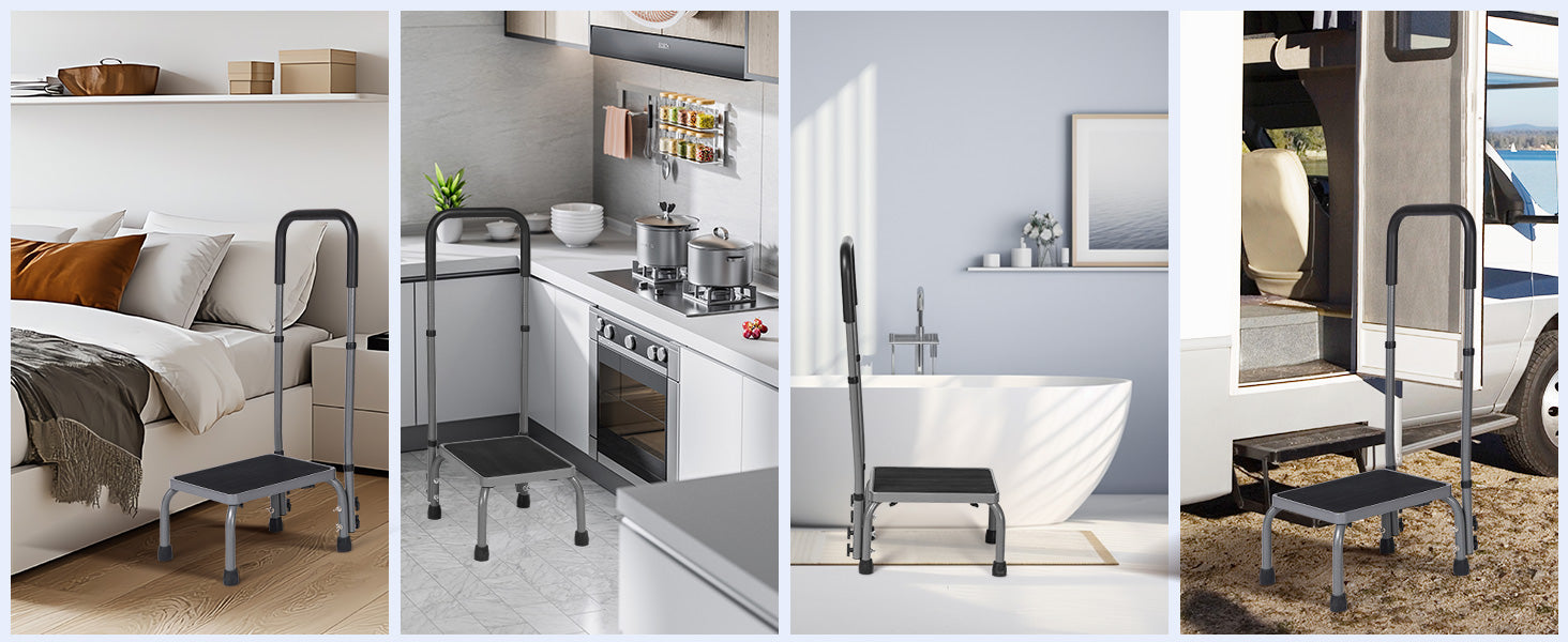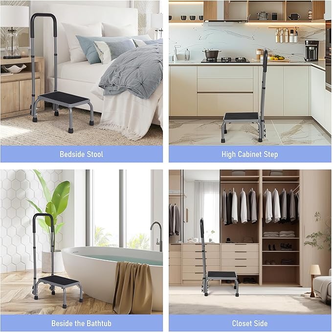 - Versatile Application: The medical step stool is a practical helper for your daily activities. Whether you use it indoors in the kitchen, bathroom or bedroom, or outdoors on camping, road trips and bus tours, our step stool with handle for elderly will provide reliable support and added comfort